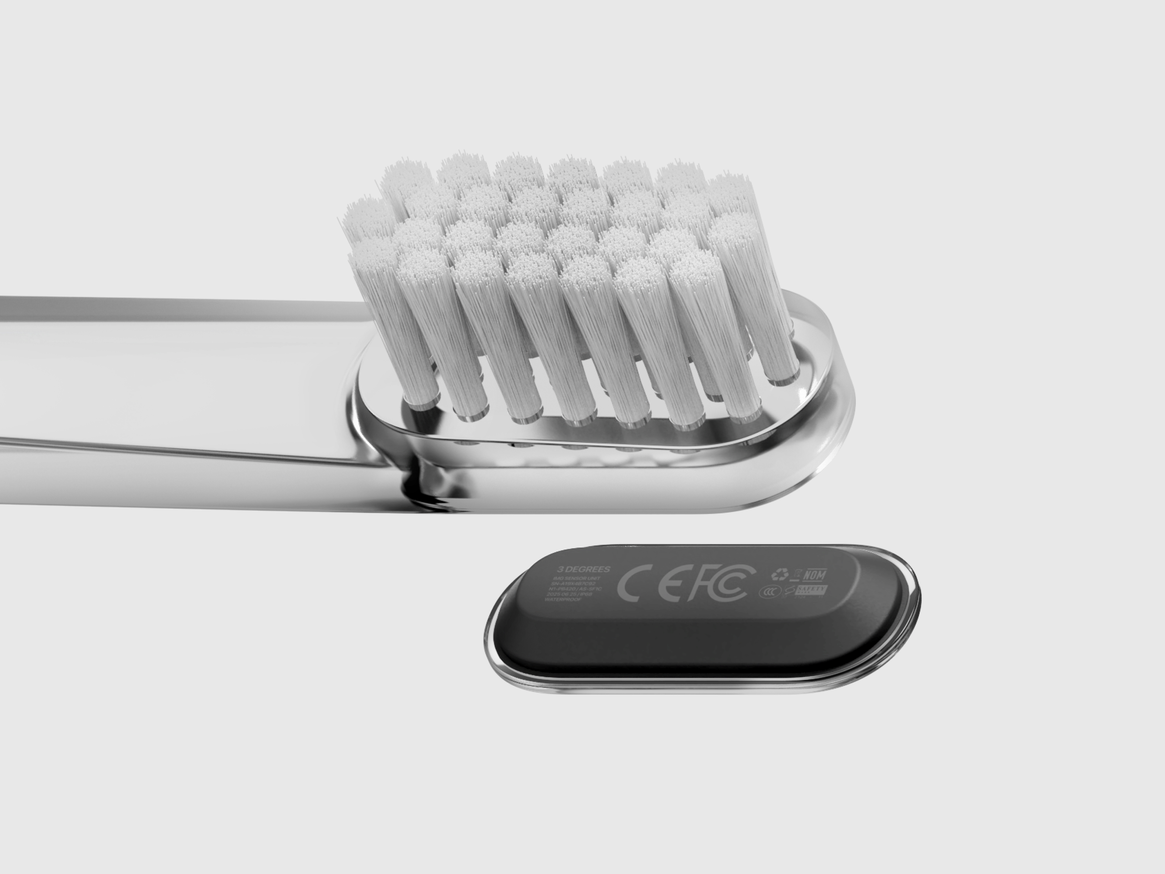 3 DEGREES consists of a sensor unit and a toothbrush body. When the user starts brushing, the sensor unit, precisely angled at 3 degrees, scans the surface of the teeth on the opposite side in real time to detect early signs of tooth decay. If any suspicious areas are found, the dedicated app quickly notifies the user and recommends timely dental care.The sensor unit can be easily separated from the toothbrush body. It supports wireless charging and meets medical-grade standards for water and dust resistance, making it safe for use inside the mouth. When the brush head becomes worn, only the body needs to be replaced, making the product both hygienic and economical.
