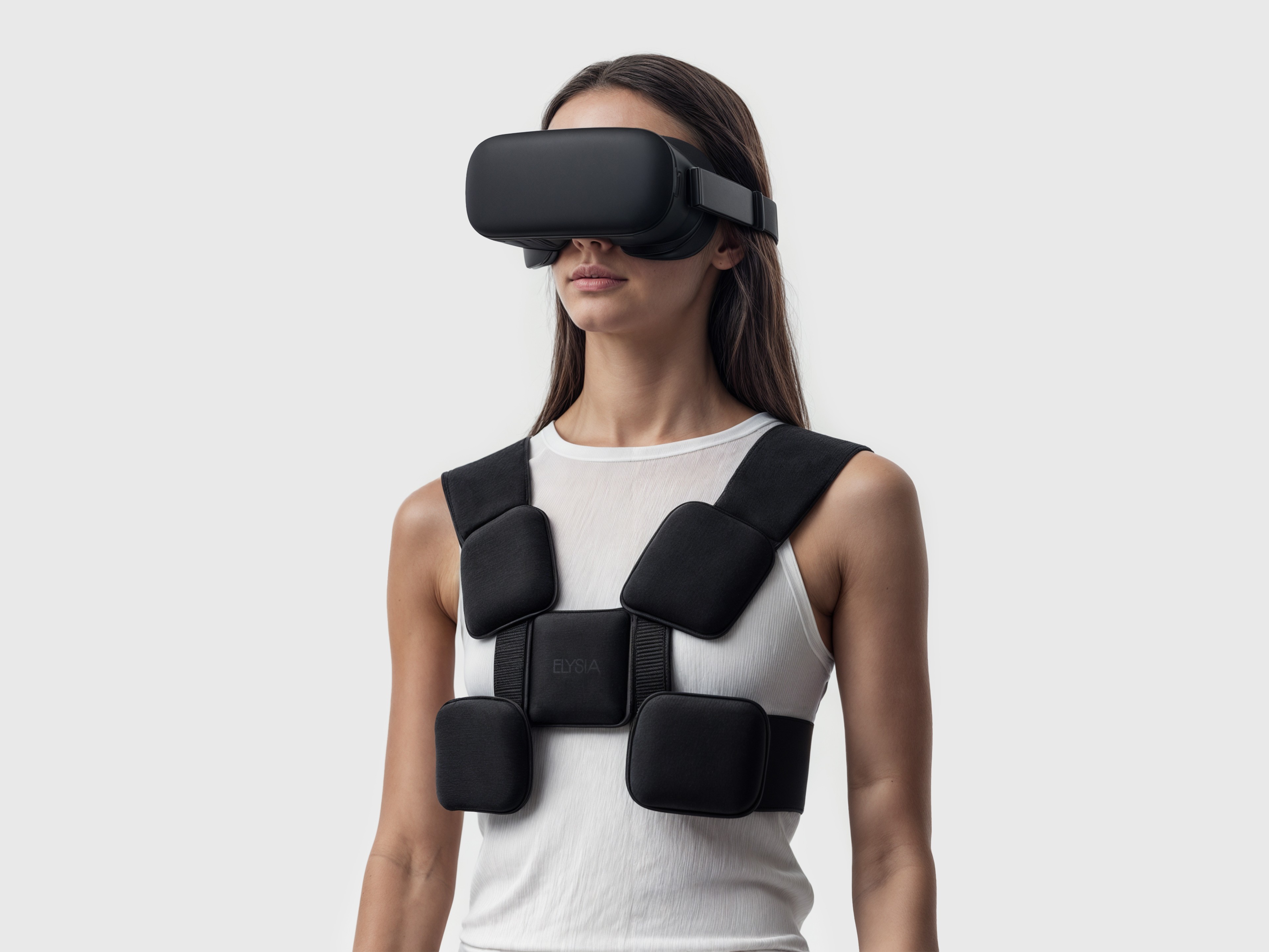 Elysia, an innovatively designed wearable speaker, features a vest-type design for easy wear. It offers customized spatial audio optimized for VR environments and effectively transmits vibrations through the user’s body, enhancing immersion in the VR experience.